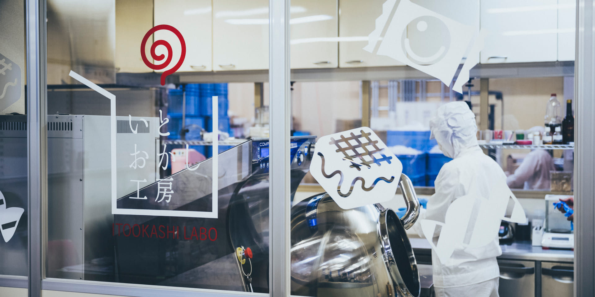 いとおかし工房は大垣工場内に設置された18m²の工房です。こちらで『オープン』、『コラボレーション』、『スピード』をキーワードに掲げ、商品開発チームのメンバーが試作を中心とした商品開発業務を行っています。社内外の皆様に新しいお菓子が生み出される現場を見ていただける様に、工房は壁の一部が透明になっており外部から中が見渡せる様になっています。工房の運営コンセプトは、既成概念にとらわれない『おかしな』お菓子を生み出だすことです。会社理念である、『常に先取の精神を持つこと』と『明るい豊かな社会づくりに貢献すること』を具現化するために、万人ウケより、ニッチ市場でコアなファンが得られる様な、特徴的なお菓子を開発することを目指します。そのために創造性を発揮するべく想像力を重視した商品開発を行っています。