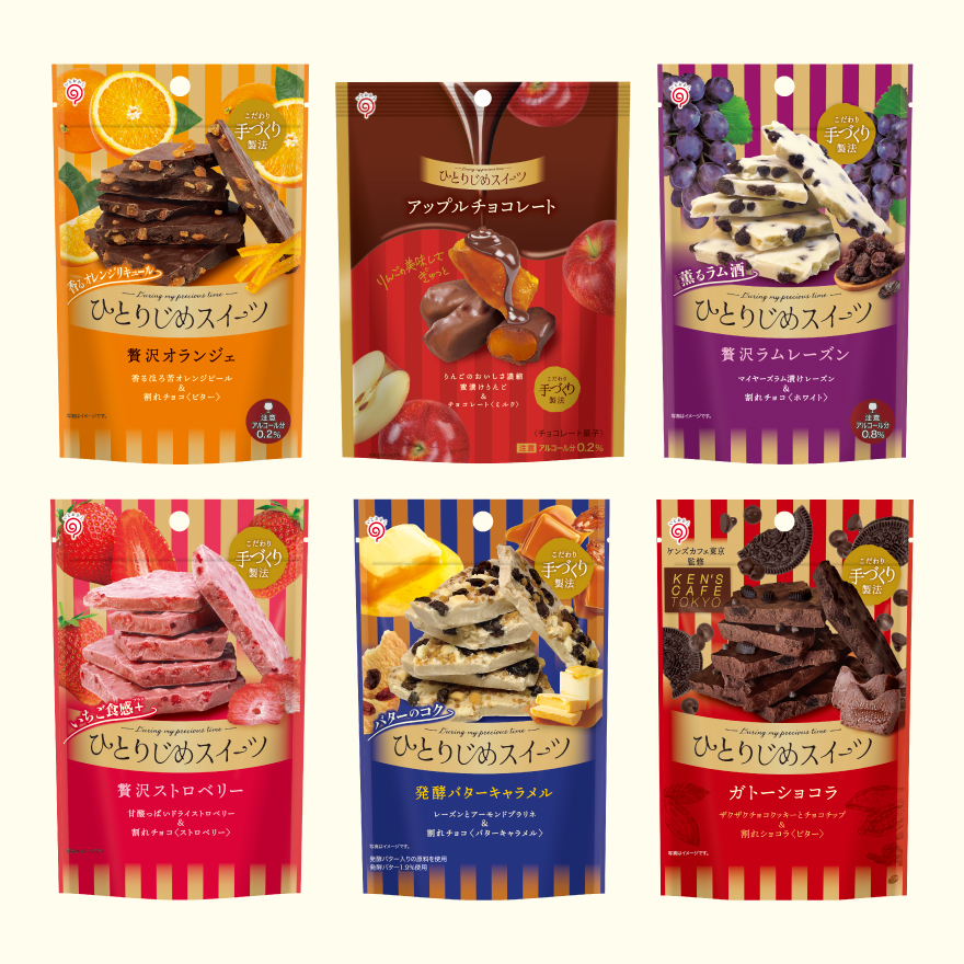 チョコレートに、贅沢な素材を練りこんだ『ひとりじめスイーツ』。持ち運びしやすいパッケージと豊富な種類が特徴です。ちょっといいおやつとして、ご自宅や会社、お出かけ先で「ひとりじめ」して、お楽しみください。